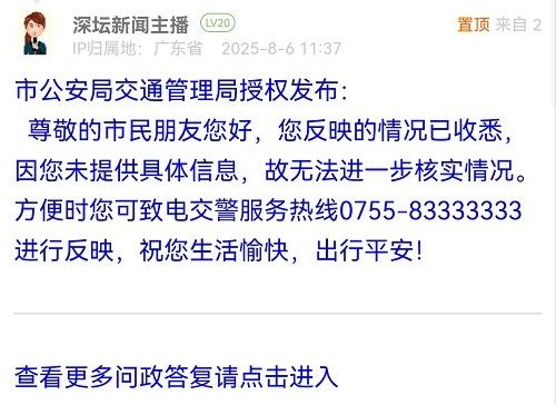 各職能單位如需對網(wǎng)友反映的問題進(jìn)行回應(yīng),可在深圳論壇注冊官方賬號并通過認(rèn)證,回帖進(jìn)行回應(yīng)。