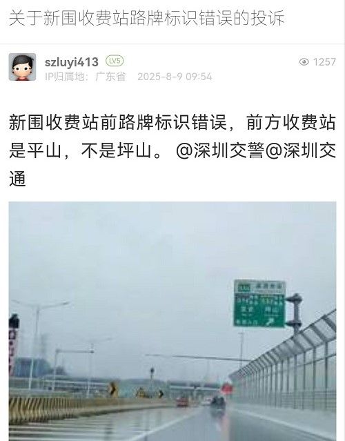 26. 帖文《關(guān)于新圍收費(fèi)站路牌標(biāo)識錯(cuò)誤的投訴》