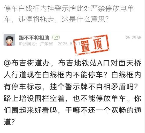 針對市民提及“白線框內(nèi)有停車標(biāo)志,掛個(gè)警示牌不自相矛盾嗎?”的問題。經(jīng)核實(shí),市民提及的問題處已被規(guī)劃為不可停放區(qū)域,禁停標(biāo)識及鐵馬圍擋是為清除白線框施工而設(shè)置的臨時(shí)空間預(yù)留措施,對此給市民帶來的誤解以及不便,我們深表歉意。目前該處白線停車框及禁停標(biāo)識已一并清除。